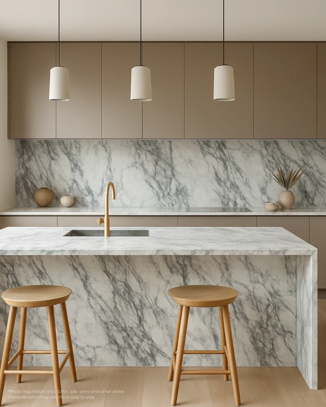 This marble works well across full benchtop runs, islands, splashbacks, and bathroom vanity tops. Natural variation is part of the stone’s character, and sealing is recommended for longevity in kitchen and bathroom environments.