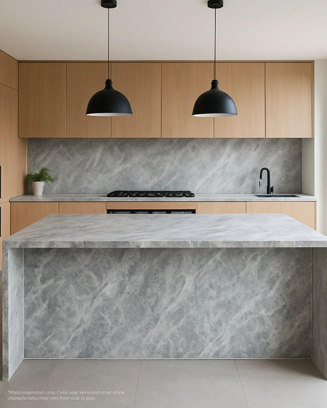 Each slab is unique. Natural colour variation, veining, movement, and micro-fissures are normal and part of the stone’s character.
