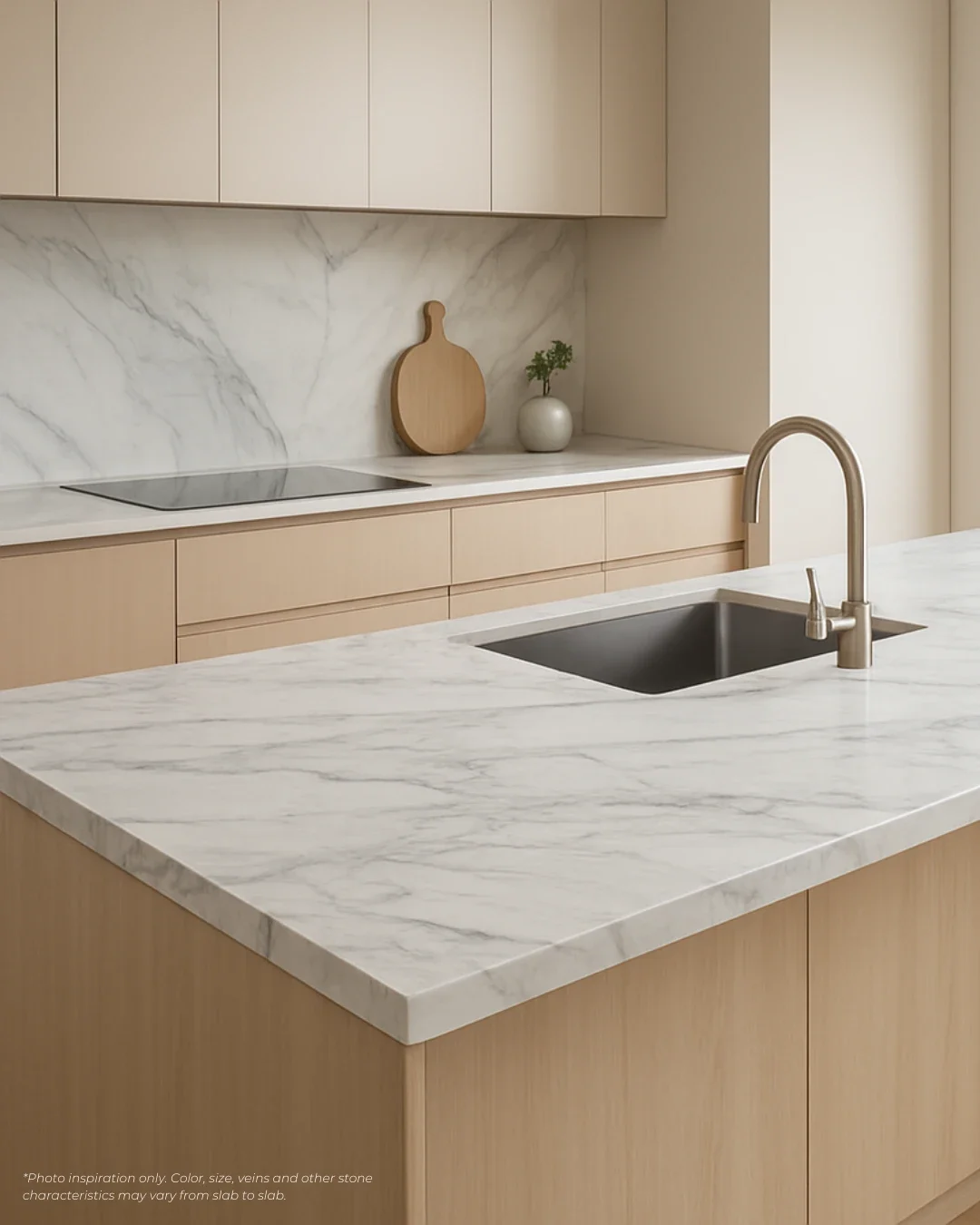 Each slab is unique. Natural colour variation, veining, movement, and micro-fissures are normal and part of the stone’s character.