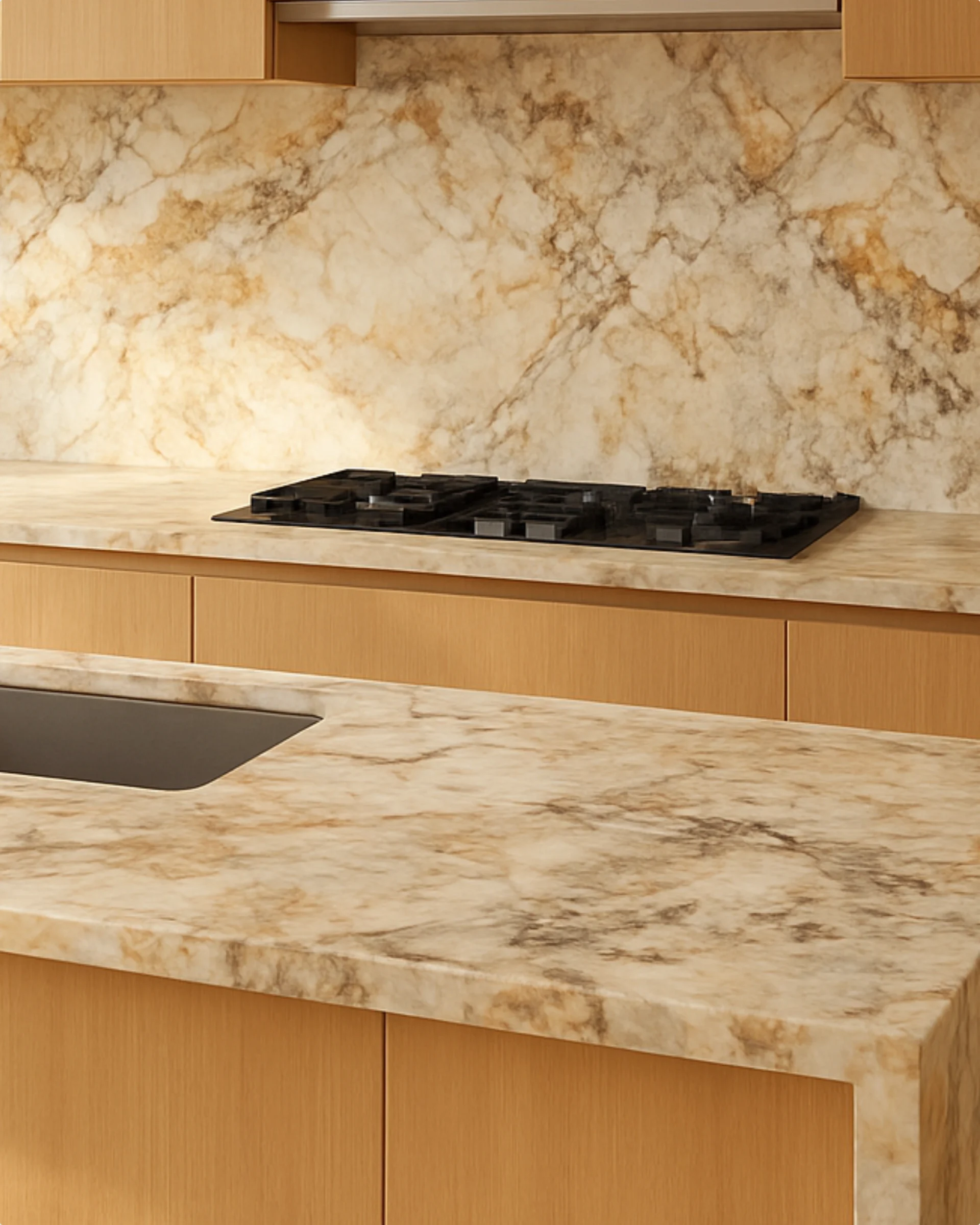 Each slab is unique. Natural colour variation, veining, movement, and micro-fissures are normal and part of the stone’s character.