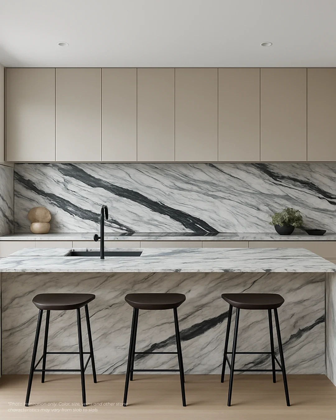 Each slab is unique. Natural colour variation, veining, movement, and micro-fissures are normal and part of the stone’s character.